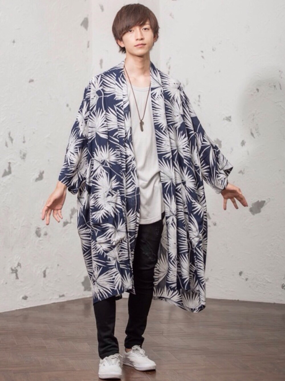 REONのカーディガン/ボレロ「リーフ柄BIGシルエットドレープガウン」を使ったコーディネート