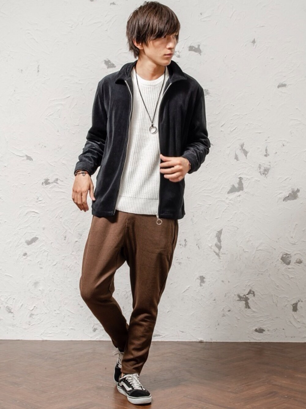 REONのブルゾン「メンズ長袖ベロア素材スウィングトップ ジャケット」を使ったコーディネート