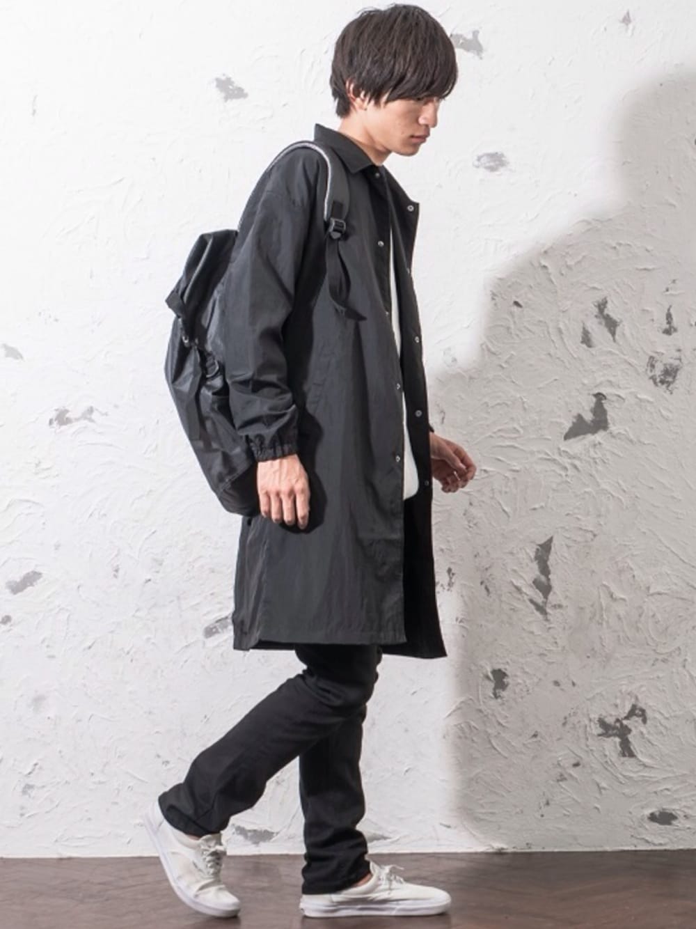 REONのステンカラーコート「メンズナイロンワッシャーステンカラーコート」を使ったコーディネート