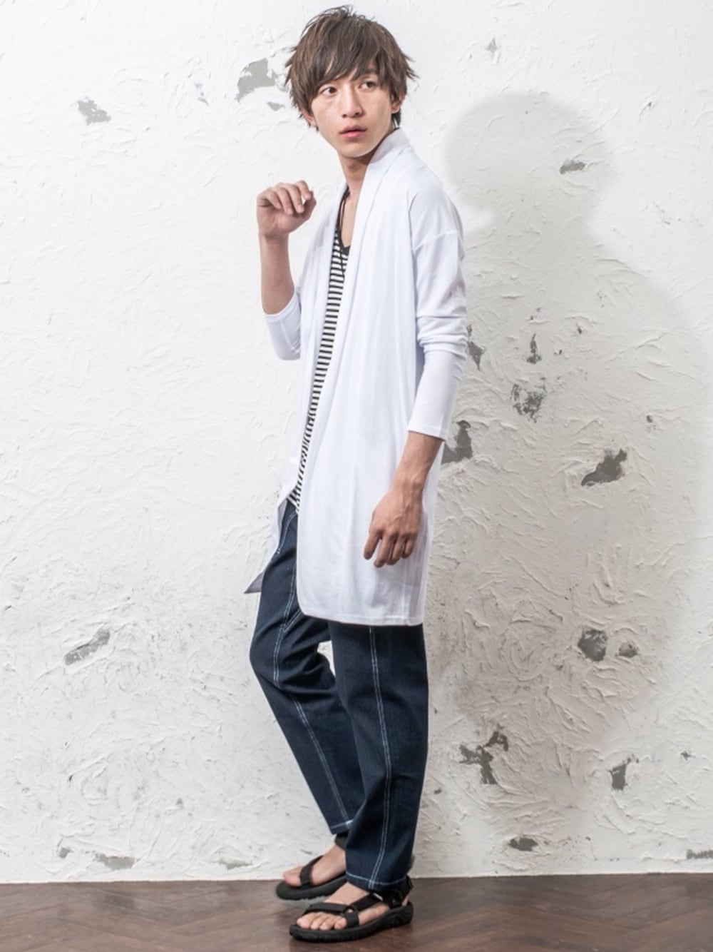 REONのカーディガン/ボレロ「【MinoriTY】ノーカラー ロングカーディガン メンズ 秋服 無地 ロング丈」を使ったコーディネート