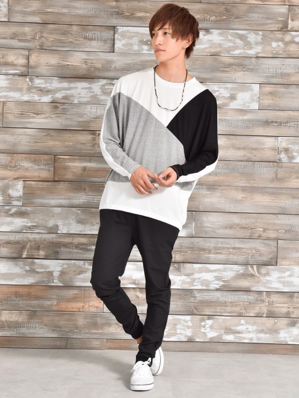REONのTシャツ/カットソー「メンズ切り替えドルマンスリーブロンT」を使ったコーディネート