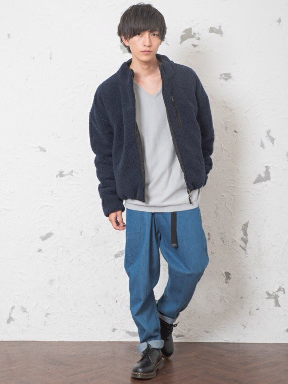 REONのブルゾン「メンズビッグシルエットリバーシブルスタンドボアジャケット」を使ったコーディネート
