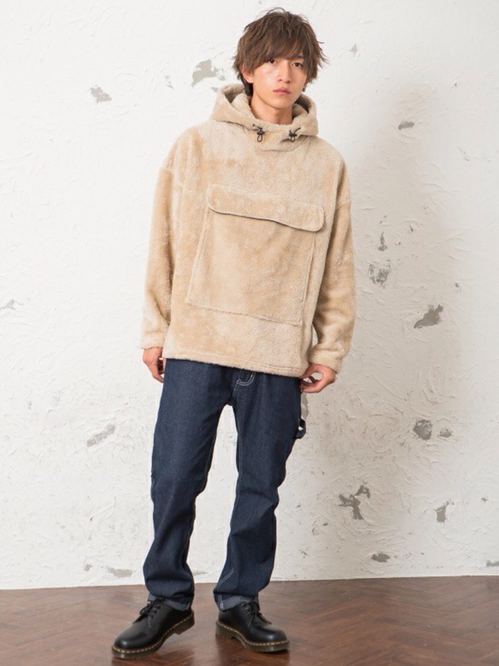 REONのパーカー「メンズボアBIGポケットアノラックパーカー」を使ったコーディネート