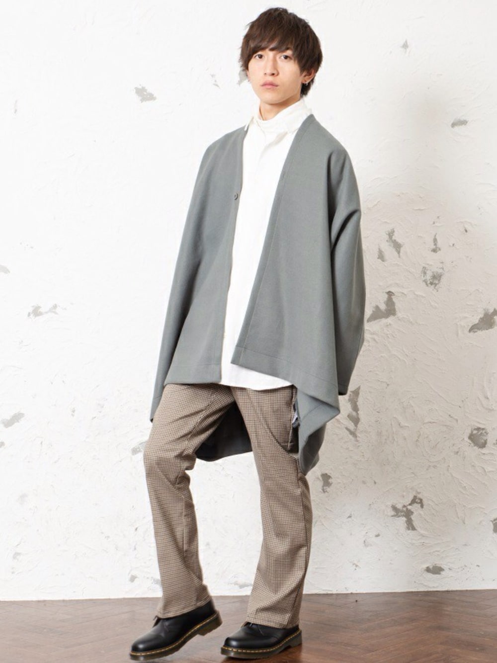 REONのポンチョ「【MinoriTY】ポンチョ オーバーサイズ メルトン ビッグシルエット カーデ 秋服 メンズ」を使ったコーディネート