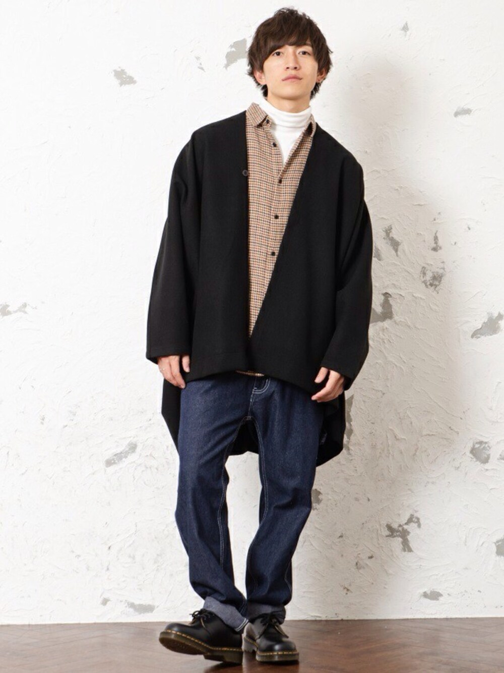 REONのポンチョ「【MinoriTY】ポンチョ オーバーサイズ メルトン ビッグシルエット カーデ 秋服 メンズ」を使ったコーディネート
