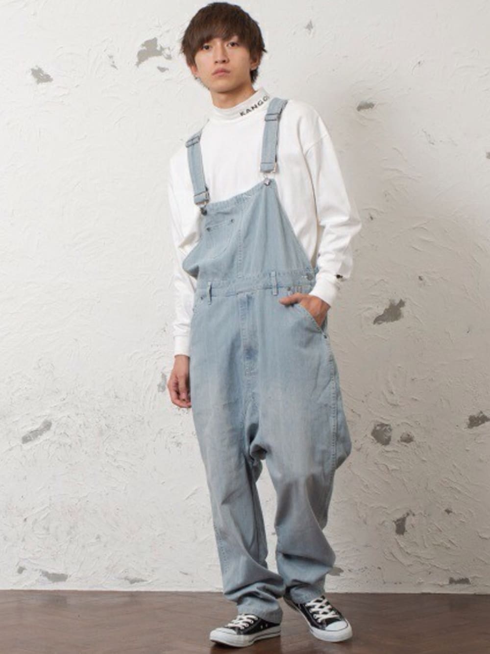 REONのサロペット/オーバーオール「メンズサルエルデニムオーバーオール」を使ったコーディネート