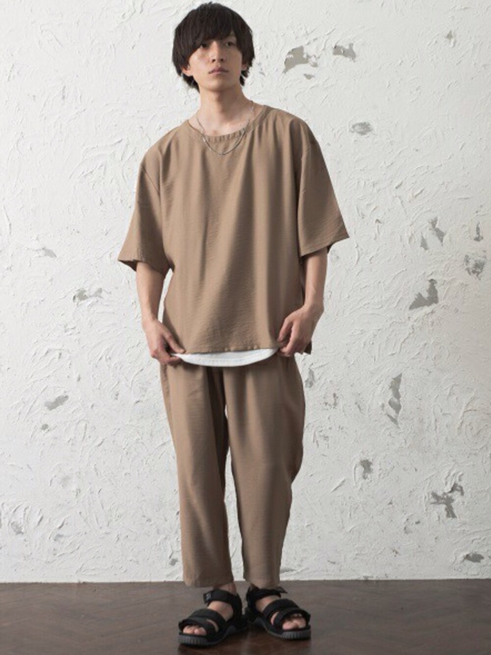 REONのTシャツ/カットソー「メンズとろみ素材ルーズTシャツ【同素材のセットアップアイテムあり】」を使ったコーディネート