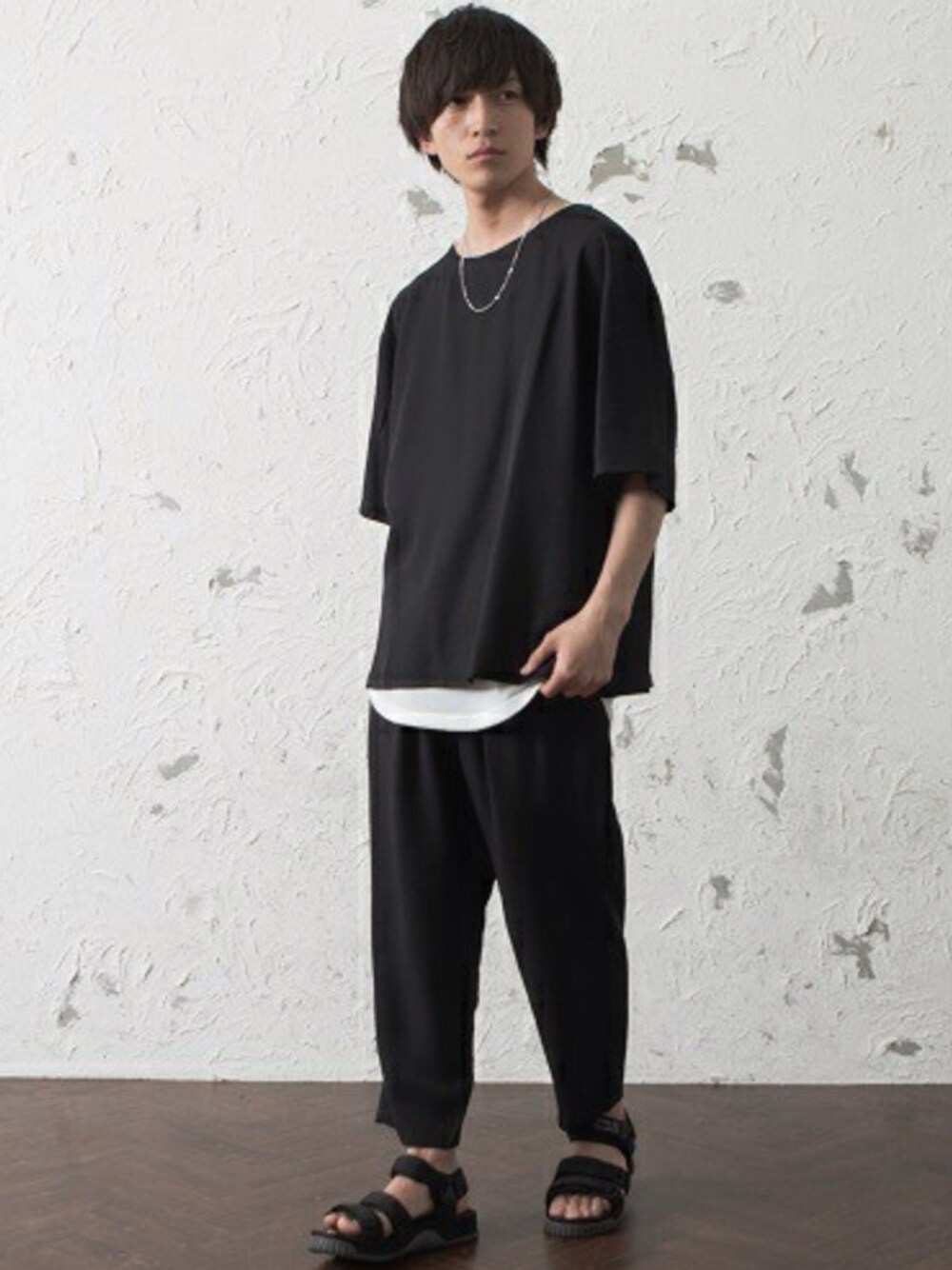 REONのTシャツ/カットソー「メンズとろみ素材ルーズTシャツ【同素材のセットアップアイテムあり】」を使ったコーディネート