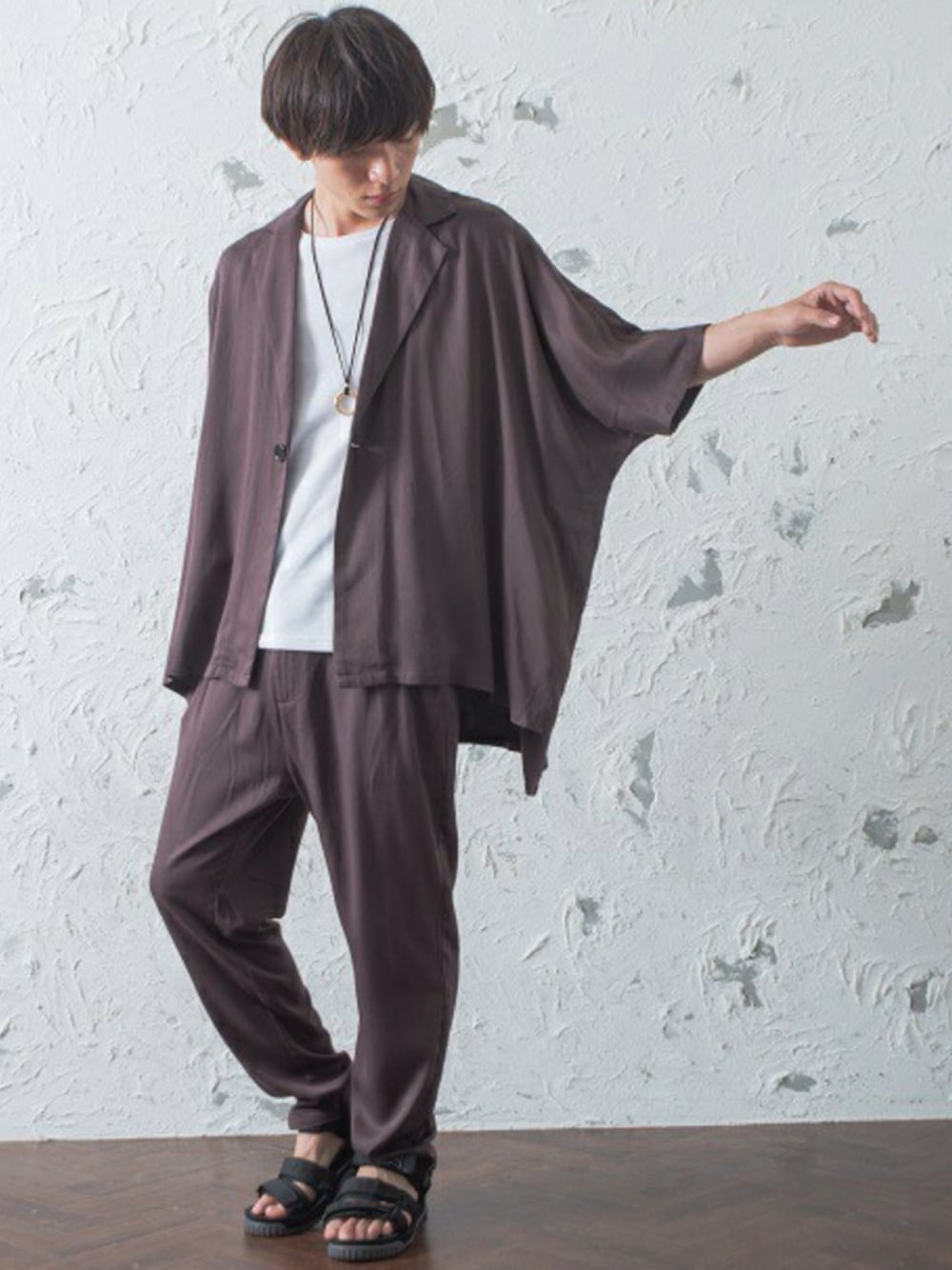 REONのテーラードジャケット「【MinoriTY】とろみ素材ビッグドルマンテーラードジャケット メンズ ライトアウター オーバーサイズ ビッグシルエット ルーズフィット 夏服」を使ったコーディネート