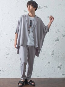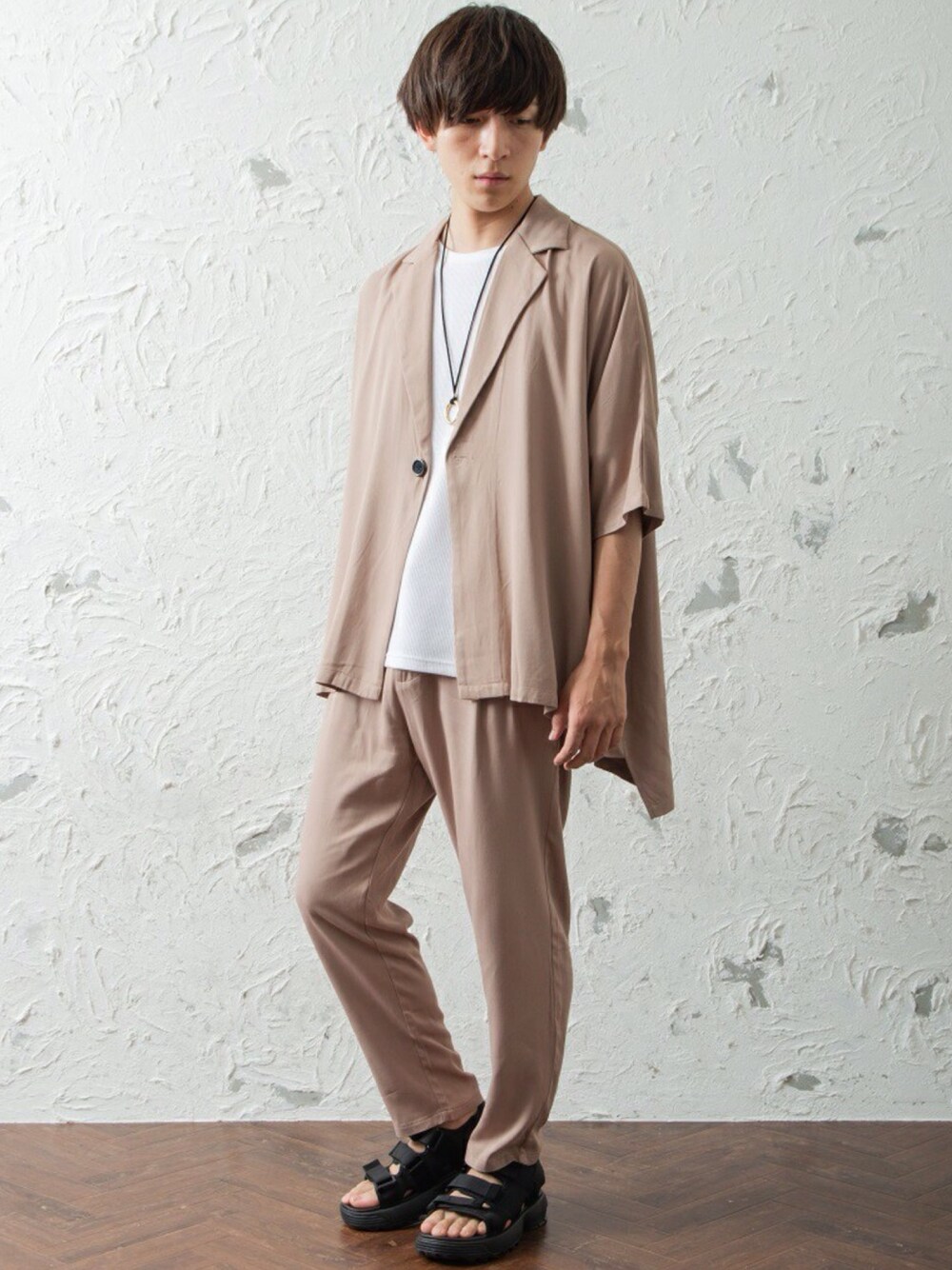 REONのテーラードジャケット「【MinoriTY】とろみ素材ビッグドルマンテーラードジャケット メンズ ライトアウター オーバーサイズ ビッグシルエット ルーズフィット 夏服」を使ったコーディネート