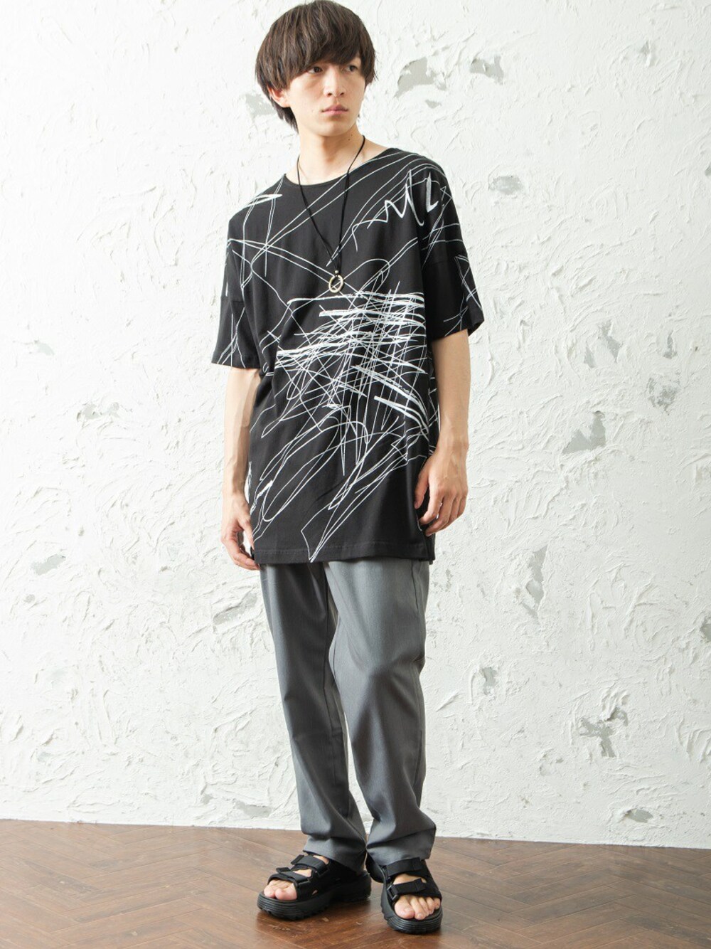 REONのTシャツ/カットソー「【MinoriTY】オーバーサイズ落書きデザインTシャツ 柄Tシャツ メンズ 半袖Tシャツ アート柄プリント 秋服 夏服」を使ったコーディネート
