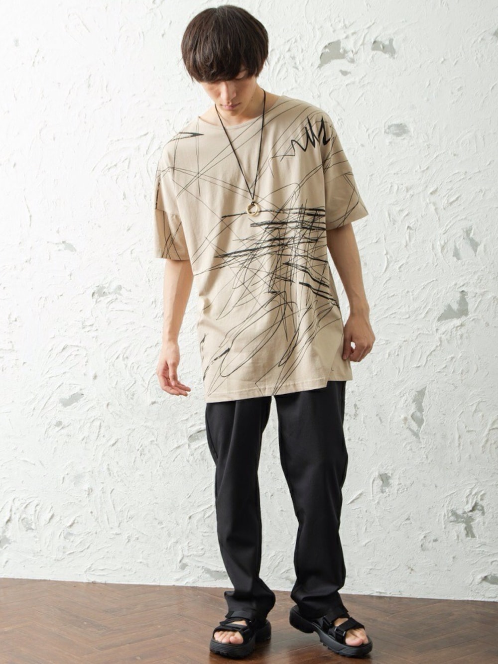 REONのTシャツ/カットソー「【MinoriTY】オーバーサイズ落書きデザインTシャツ 柄Tシャツ メンズ 半袖Tシャツ アート柄プリント 秋服 夏服」を使ったコーディネート