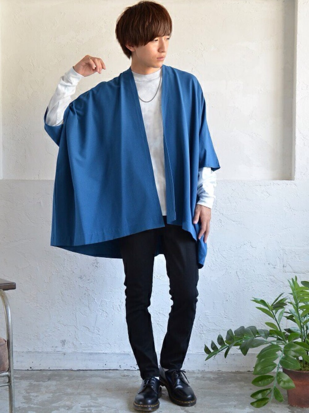 REONのカーディガン/ボレロ「メンズリラックス着流しカーデポンチョ」を使ったコーディネート