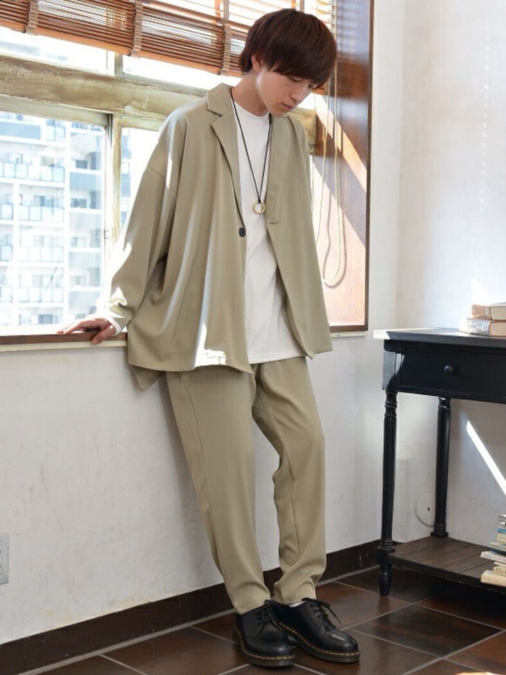 REONのセットアップ「ドルマンジャケットセットアップ とろみ素材」を使ったコーディネート