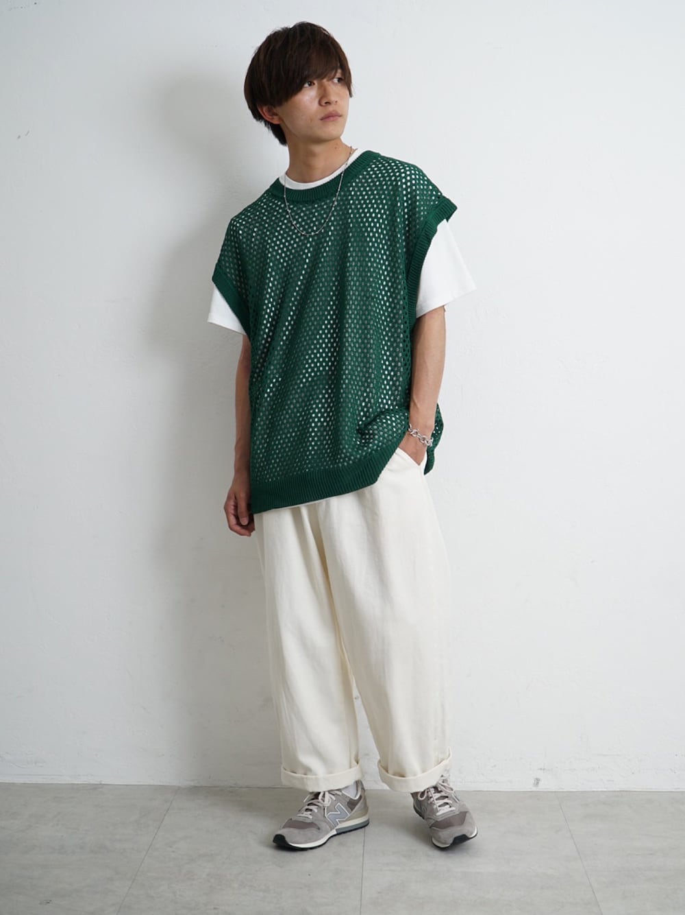 REONのアンサンブル「【MinoriTY】透かし編みニットアンサンブル メッシュトップス メッシュニット 秋服 Tシャツ ベスト メンズ」を使ったコーディネート