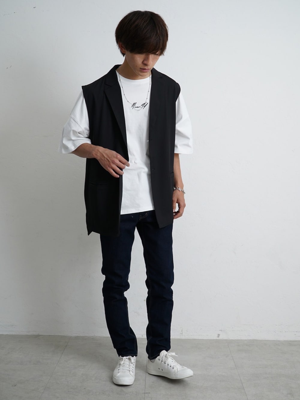 REONのベスト「【MinoriTY】ジレ ロングジレ テーラードベスト ロングベスト ノースリーブ メンズ 秋服 」を使ったコーディネート