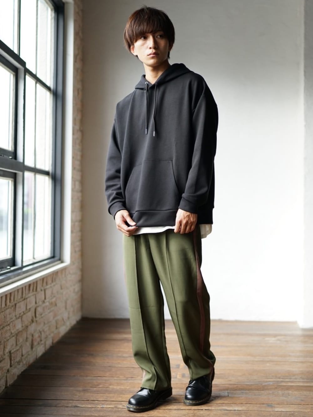 REONのパーカー「【MinoriTY】もちもちポンチ素材立体フードオーバーサイズパーカー フーディー メンズ 秋ルーズシルエット」を使ったコーディネート