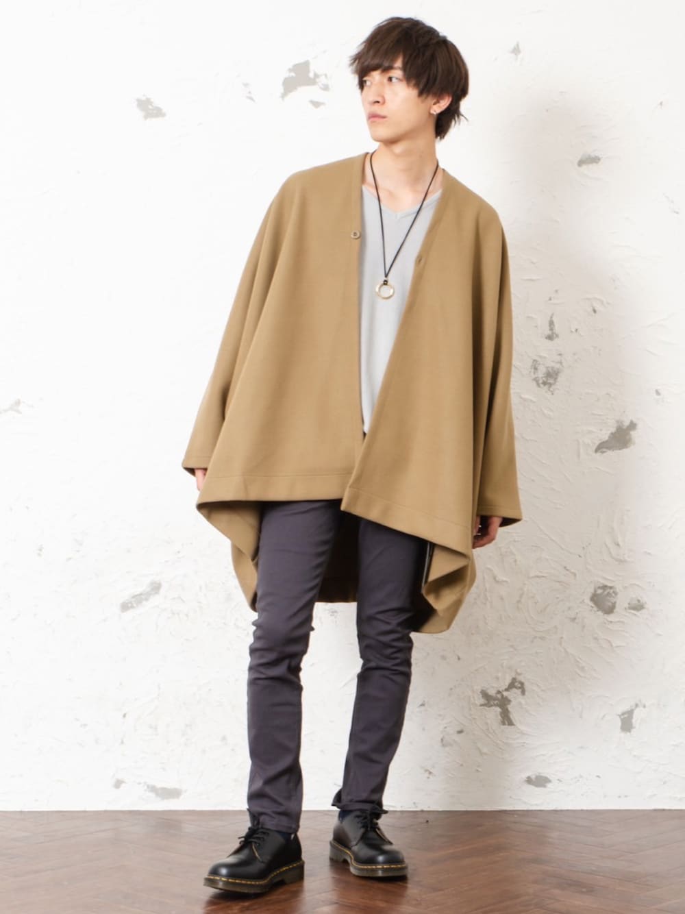 REONのポンチョ「【MinoriTY】ポンチョ オーバーサイズ メルトン ビッグシルエット カーデ 秋服 メンズ」を使ったコーディネート