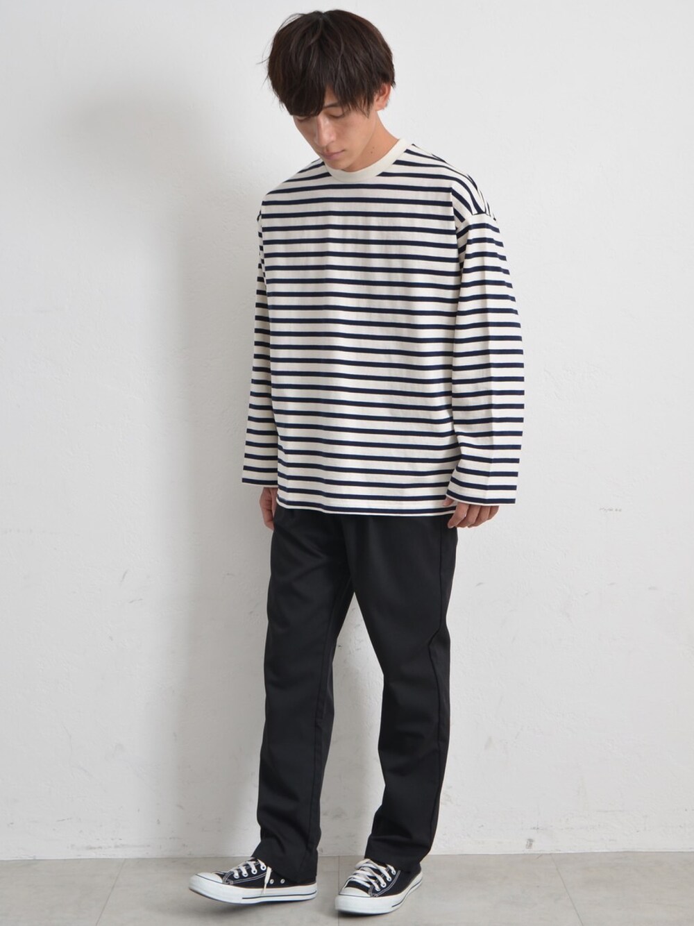 REONのTシャツ/カットソー「【MinoriTY】ヘビーウエイトビッグスリーブボーダーロンT メンズ 秋服 夏服 オーバーサイズ」を使ったコーディネート
