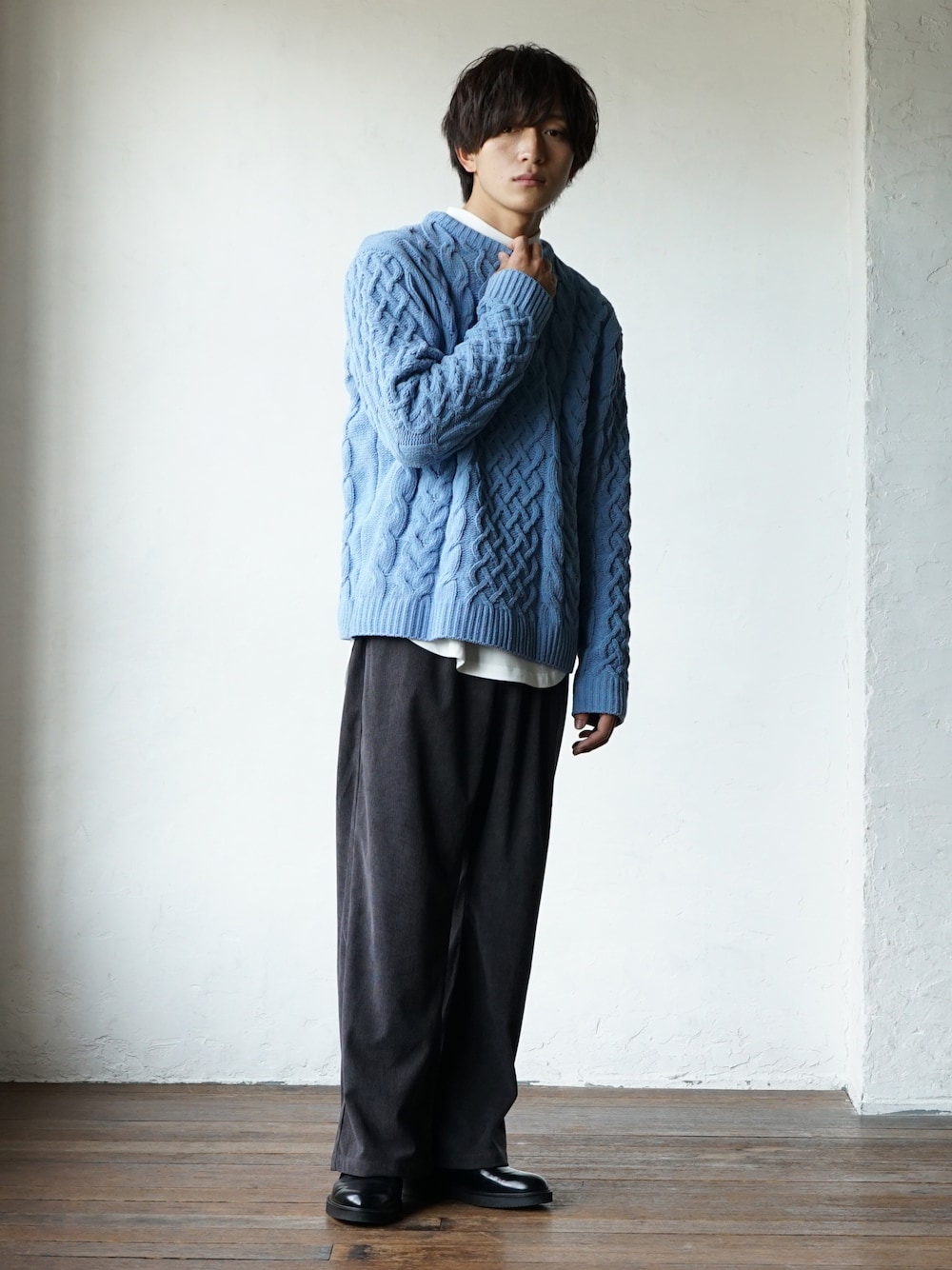 REONのニット/セーター「ケーブルニット モールヤーン クルーネックセーター 春服 冬服」を使ったコーディネート