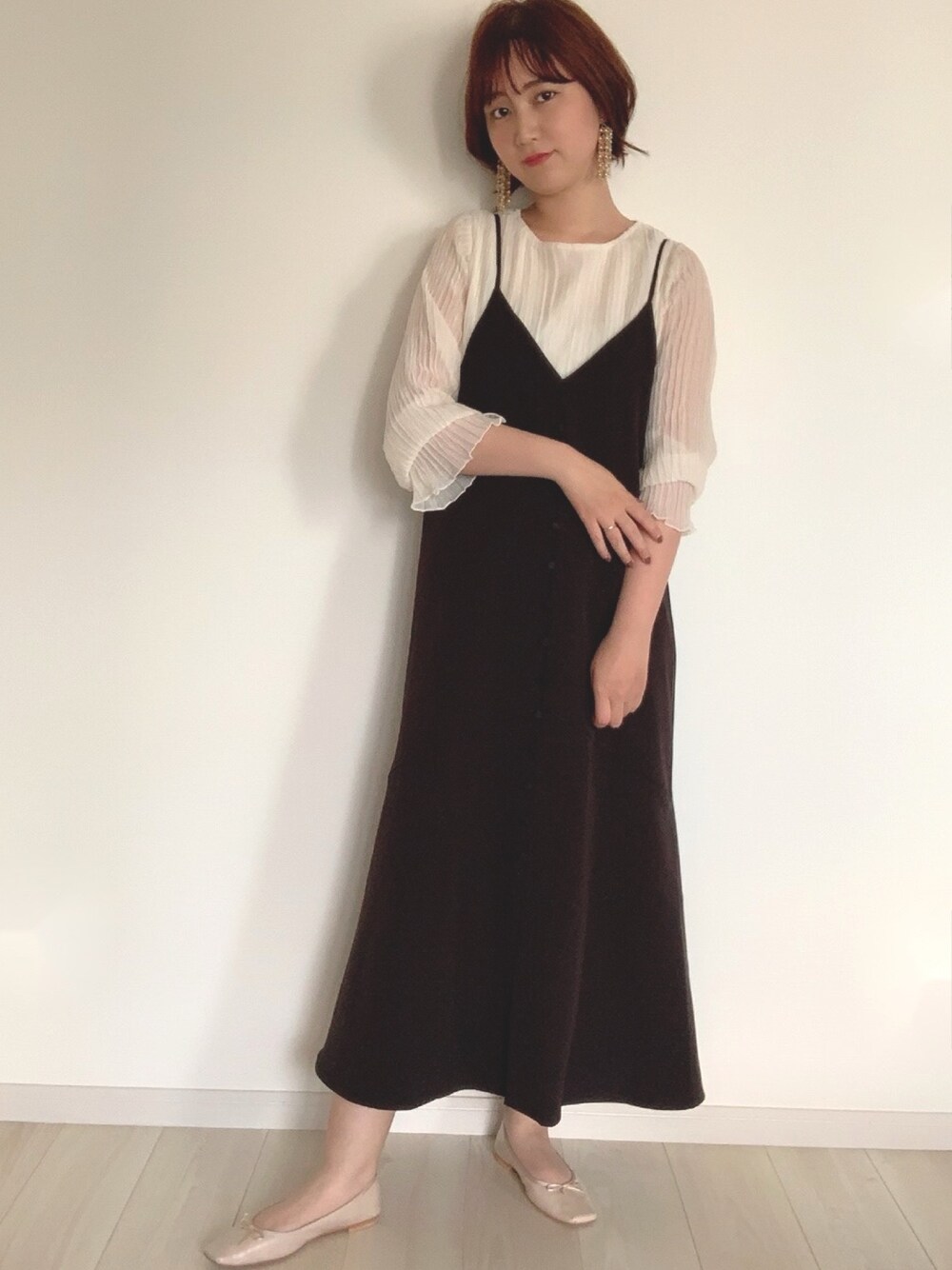 キャミワンピに、ブラウスを合わせてきれいめおとなコーデです🐒 Tシャツを合わせればカジュアルにもなり、着回しがきくワンピースです💗 今から夏まで着まわせるのも嬉しいポイント☝🏻