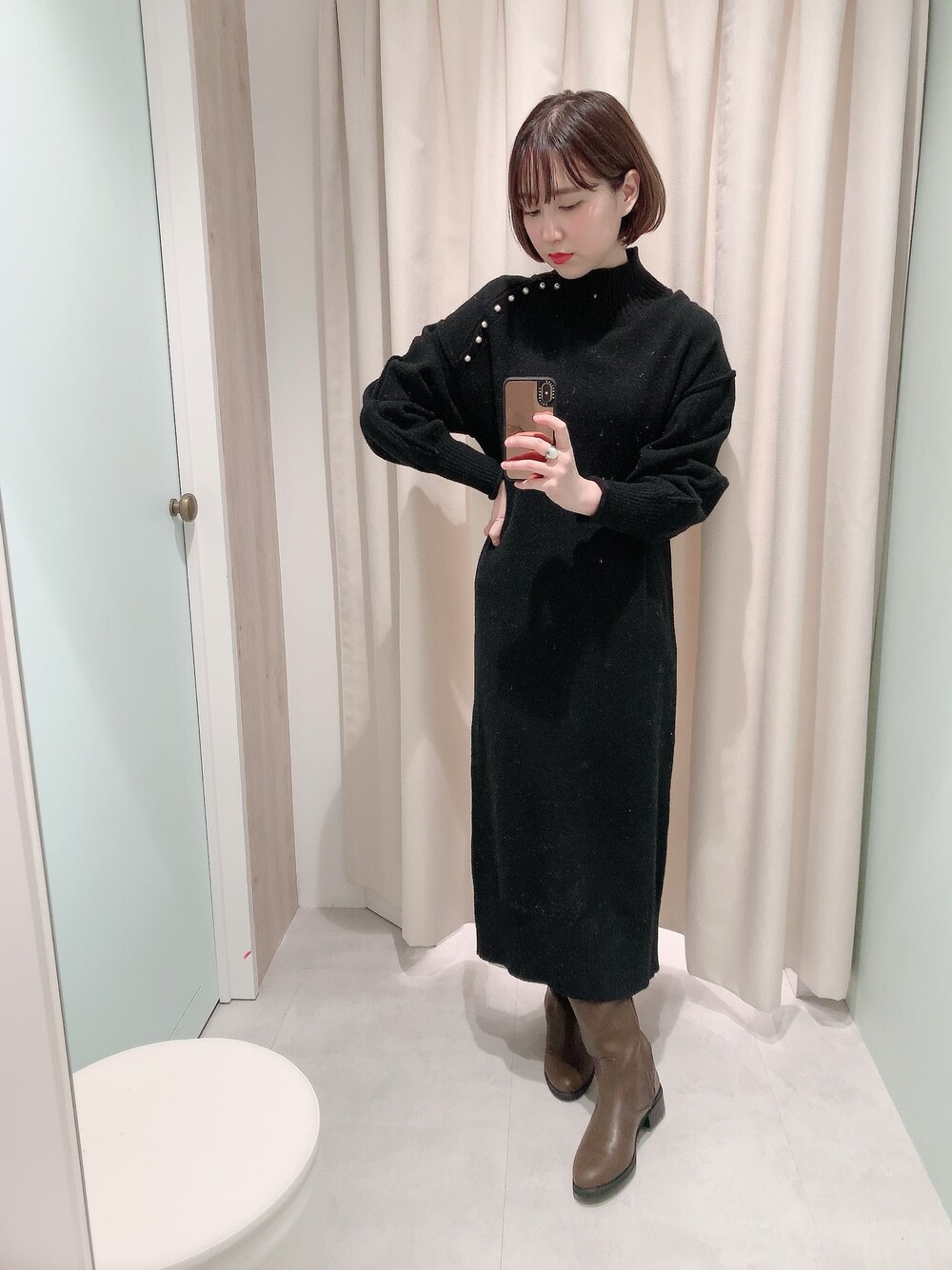 みずたに(natural couture)のワンピース「【WEB限定】サイドパールネックニットワンピース」を使ったコーディネート