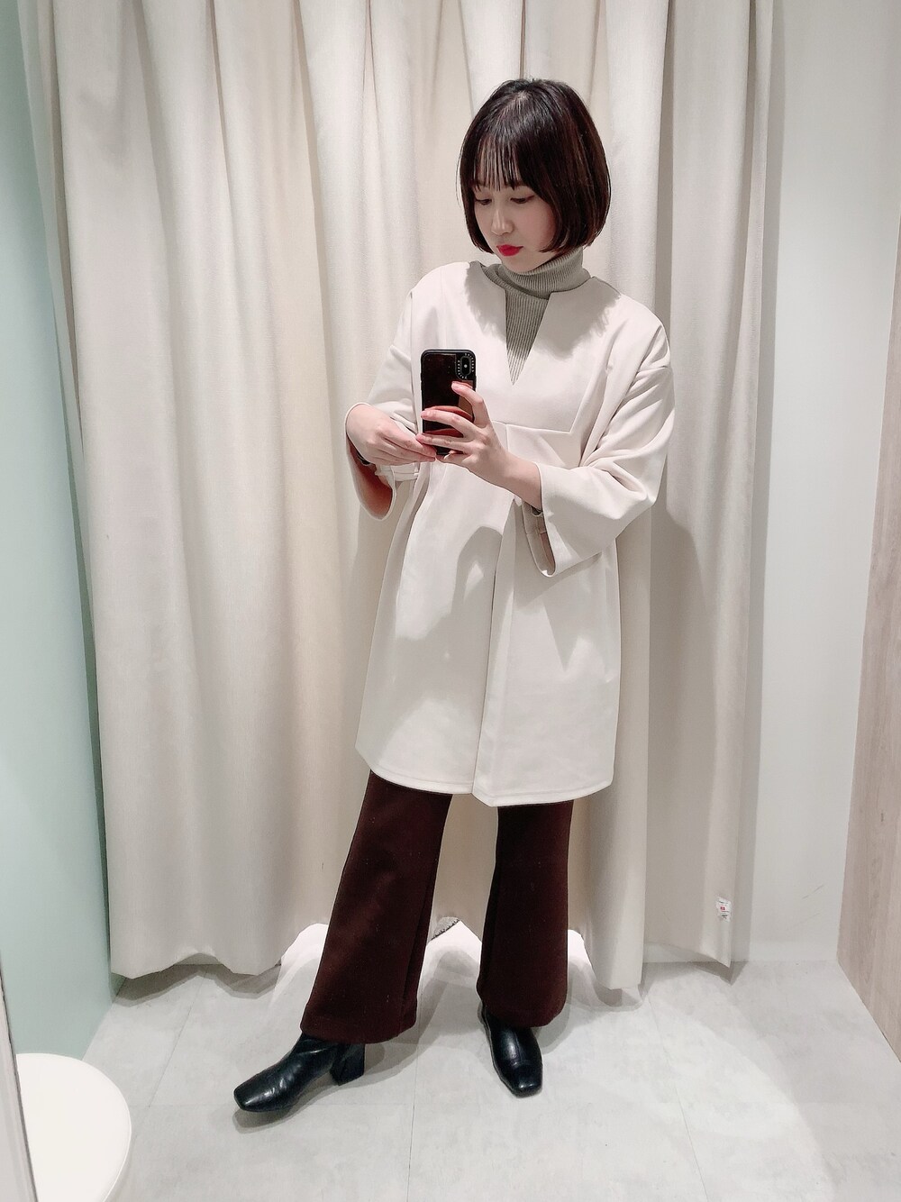 大人っぽいチュニック パンツ合わせもかわいいですし、ワンピでも着られます🥰(スタッフ164cm) ポンチスエードの素材感で、高見え!また、毛玉にもなりにくい素材感なのも嬉しいポイントです🐱