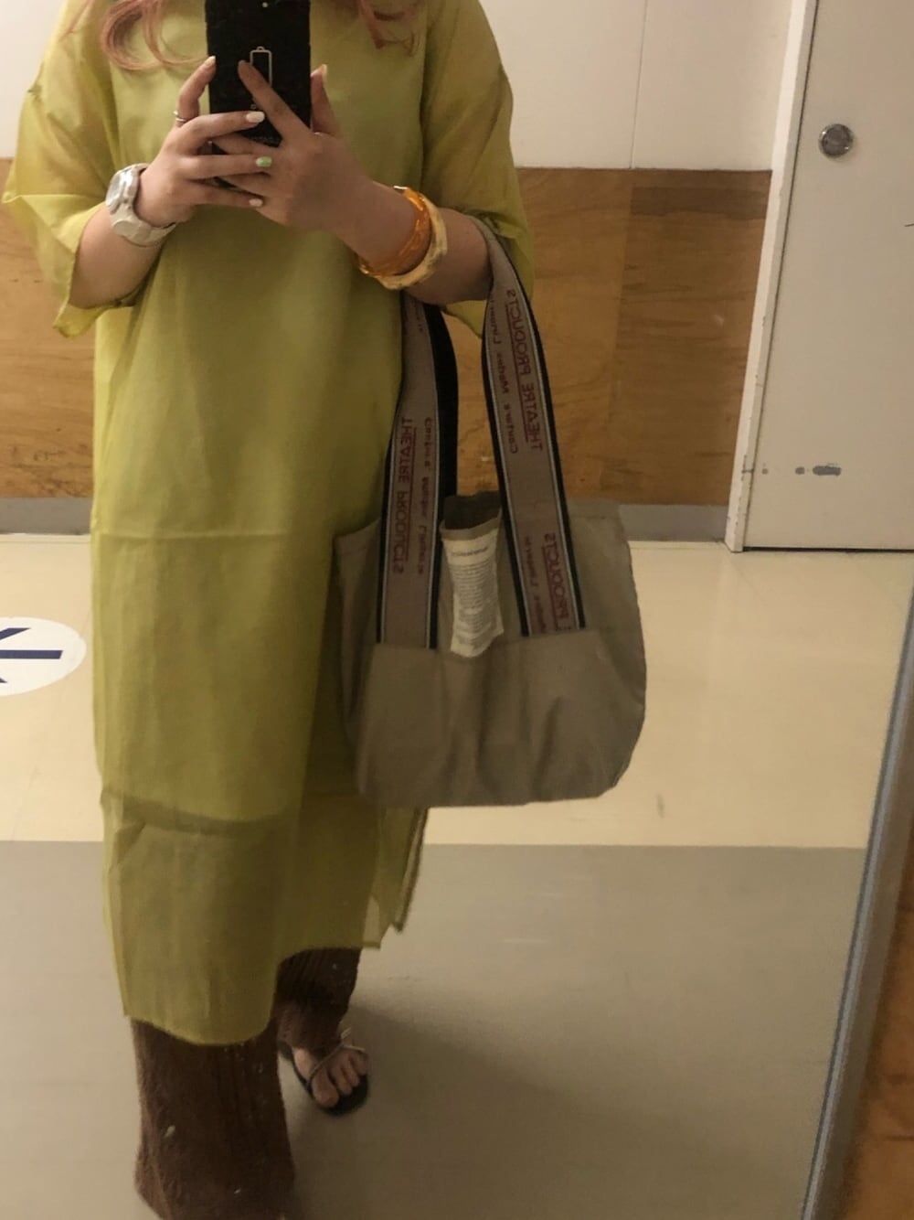 えーりあんのトートバッグ「MISSISSIPPI Msize/ジャガードテープ バッグ/パソコン13インチ・500mlペットボトル収納可能」を使ったコーディネート