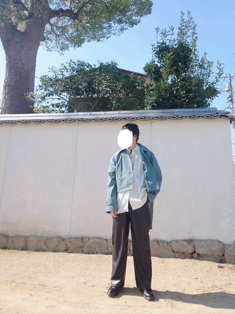 GUのレディースのレザーパンツを使ったコーデ 今年の秋冬はレザーがイチオシなのでこの値段で挑戦できるのは強すぎる。 上にもショート丈のコートを羽織って結構お気に入りな感じになった