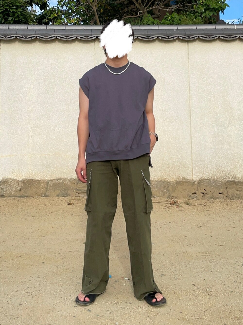 暑すぎるのでノースリーブコーデ🥵🥵🥵 色味が少し暗いのでパンツは明るいデニムとかでも良かったかも!!