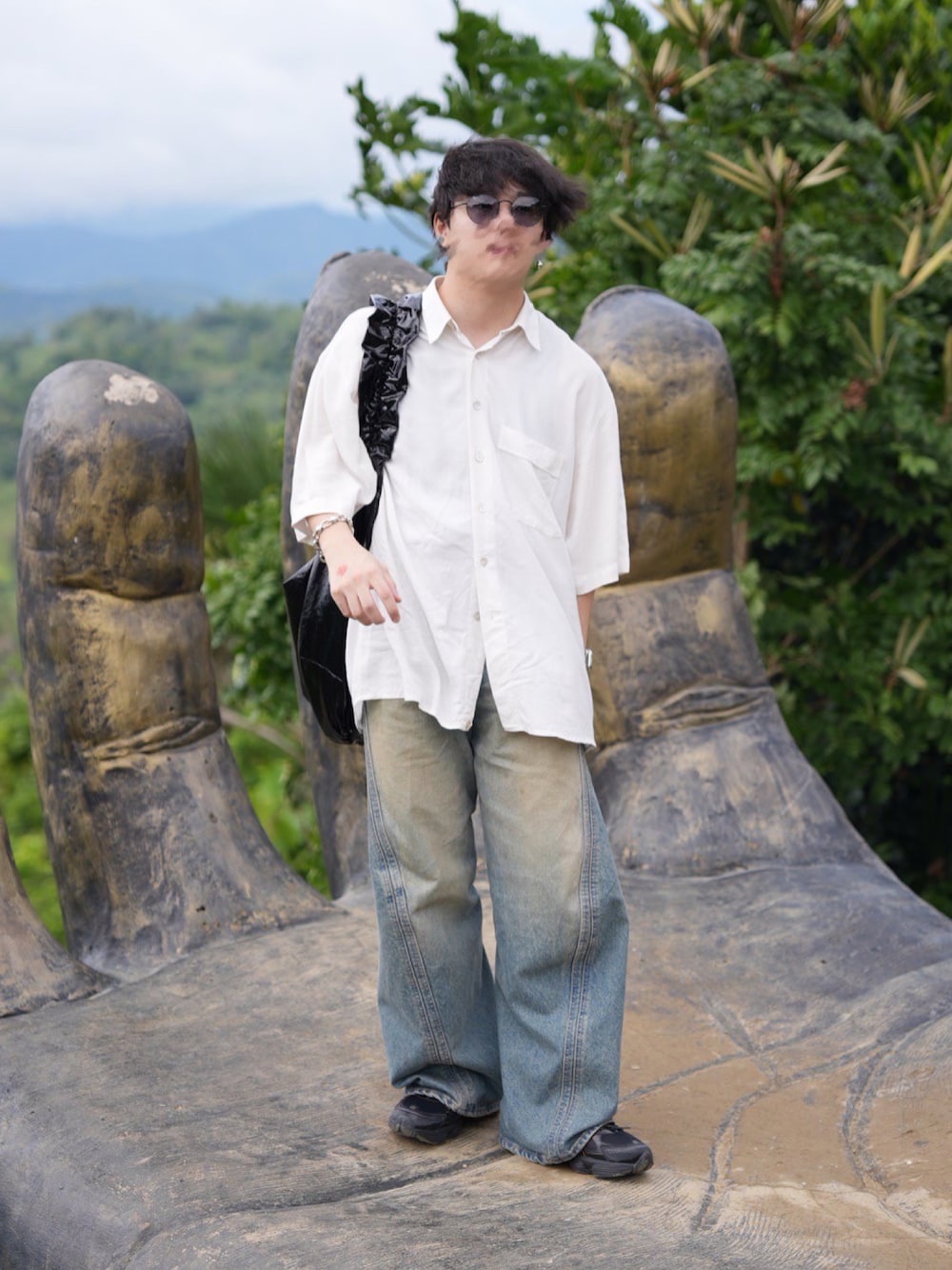 You。のデニムパンツ「別注 復刻3D TWIST WIDE LEG JEANS」を使ったコーディネート