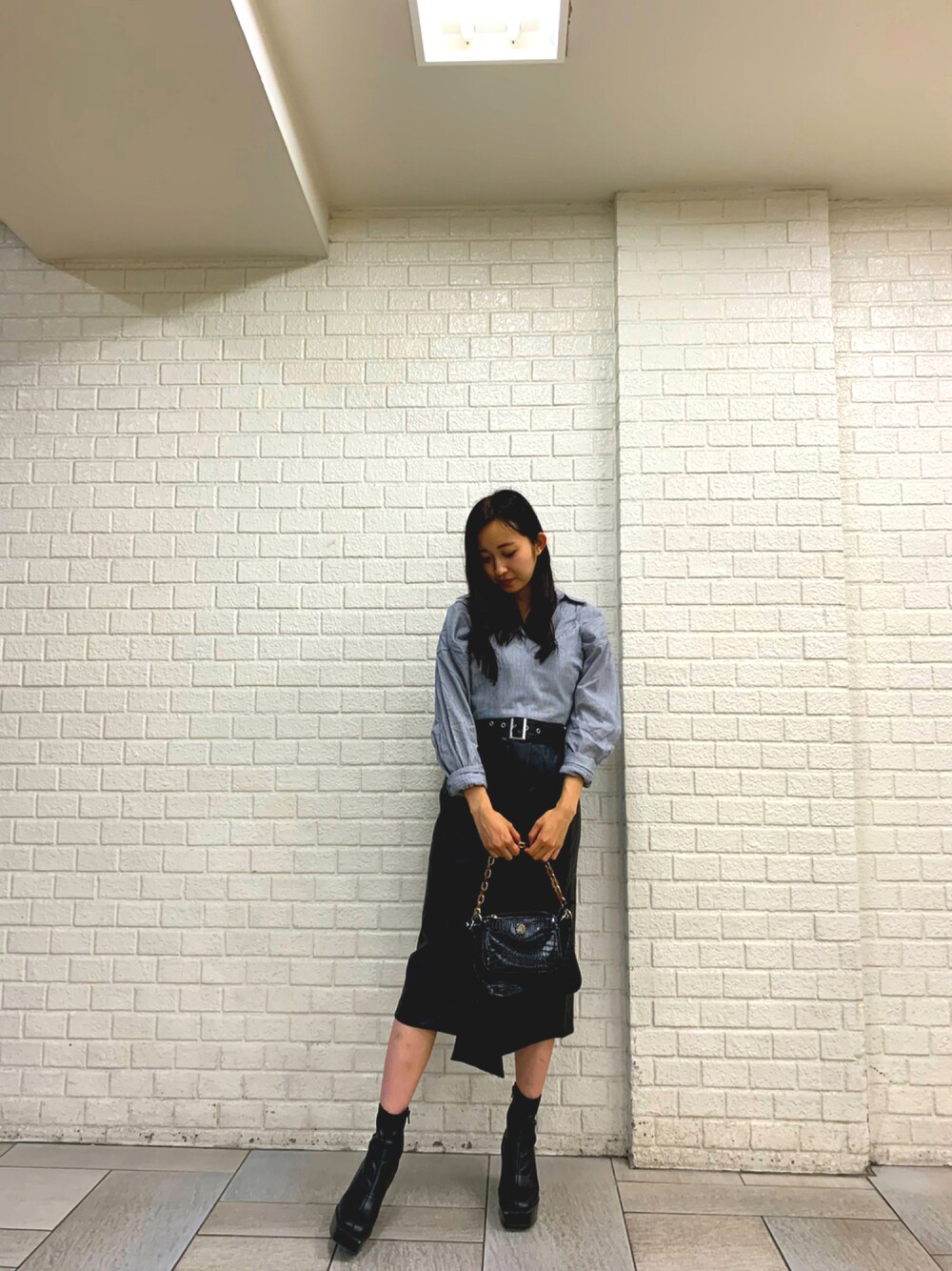 ビスチェSETシャツ×アシメレザーライクミディスカート❤︎ ビスチェとSETになっているこのシャツ着回し 最強なんです🥺私は、レザースカートで大人綺麗目コーデにしてみました! ビスチェはビスチェで使ってシャツは羽織にも使えます◎オーバーサイズなのでワンピ風にしても可愛すぎますよね〜っ!