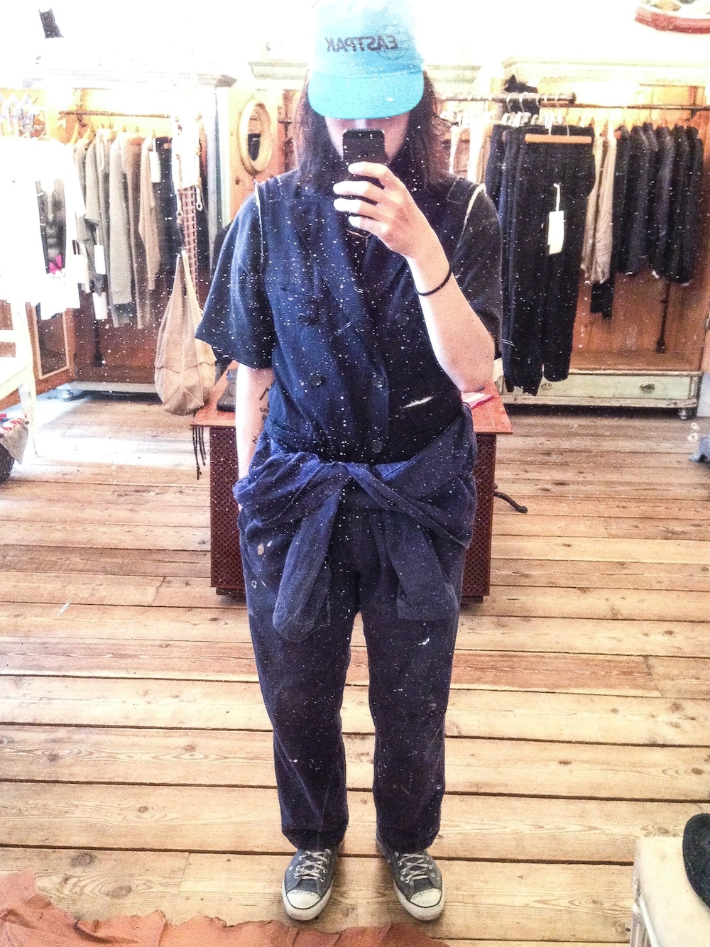 オールブルーでまとめた。 カットオフジャケットTAKAHIROMIYASHITATheSoloist. ツナギ, vintage キャップ eastpak シューズ converse