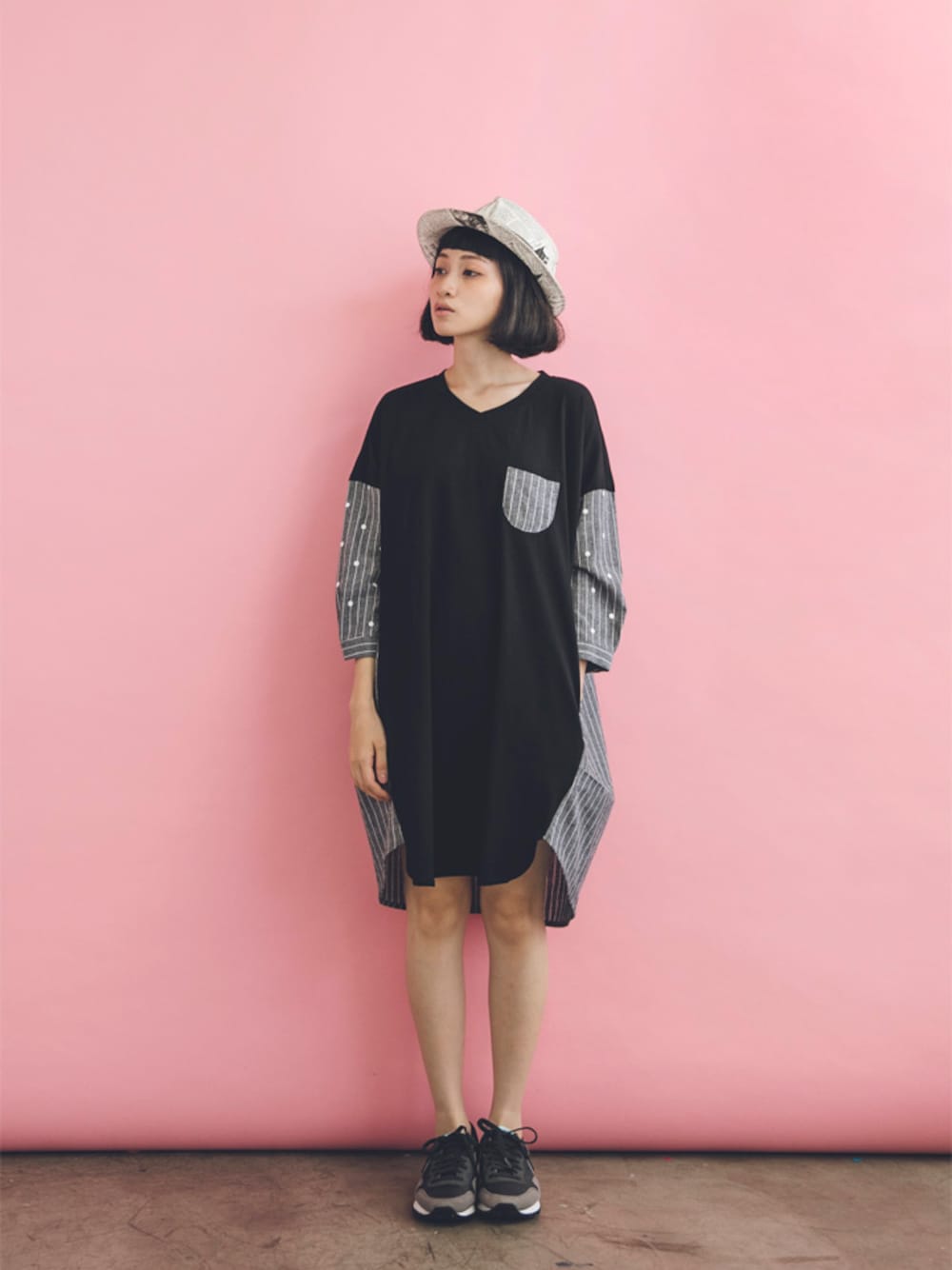 E-WEARのワンピース「【E-WEAR】異材質拼接五線譜袖子洋裝」を使ったコーディネート