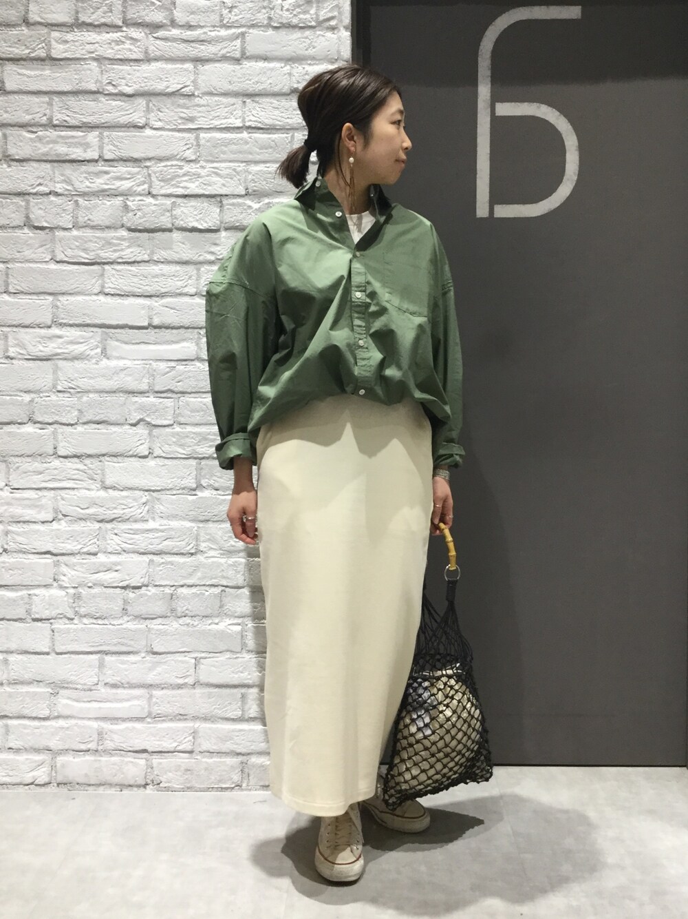 メンズシャツを使用したスタイリング。 オーバーシャツのゆる感が◯。