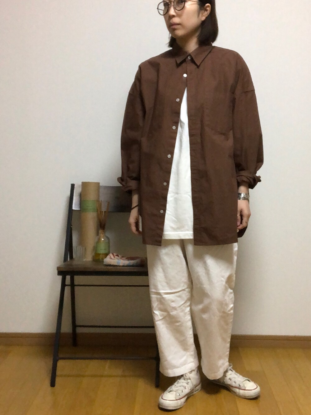 Allメンズアイテムのスタイリング シンプルなシャツスタイリングですが、 ダークブラウンをホワイトコーデに取り入れ春コーデに! 落ち着いた雰囲気で◯!