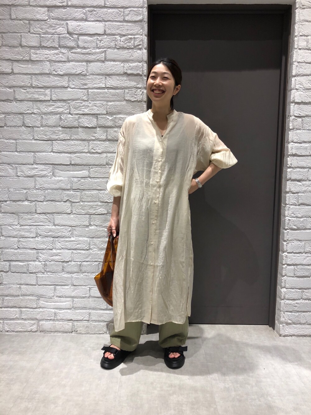 Chamiのシャツワンピース「シアーガウンワンピース/890323」を使ったコーディネート