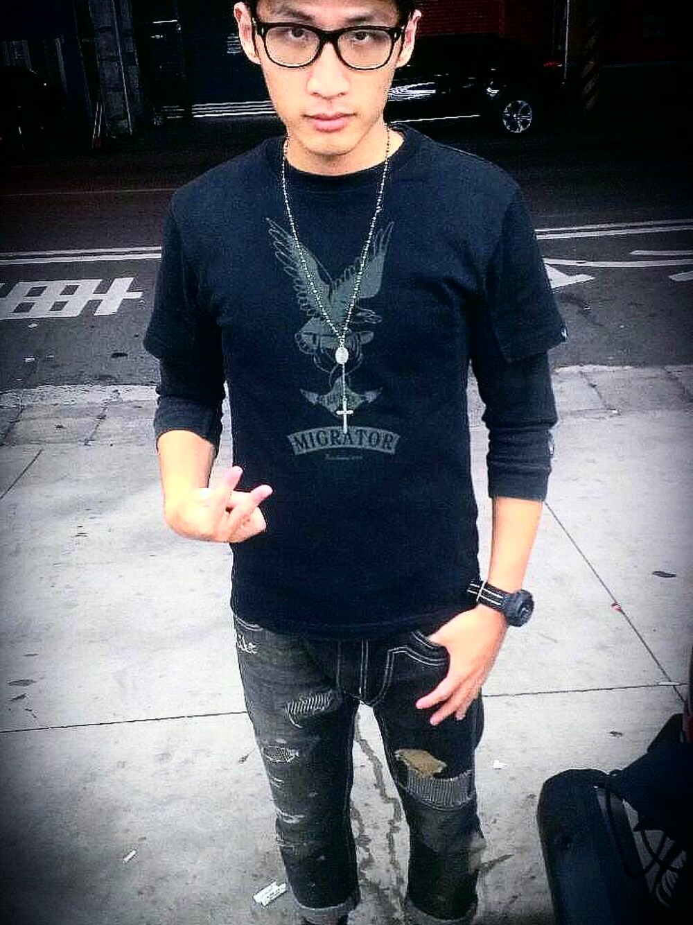 帽子 : REMIX 眼鏡 : REMIX 項鍊 : REMIX 衣服 : REMIX 褲子 : REMIX 鞋子 : REMIX 手錶 : REMIX