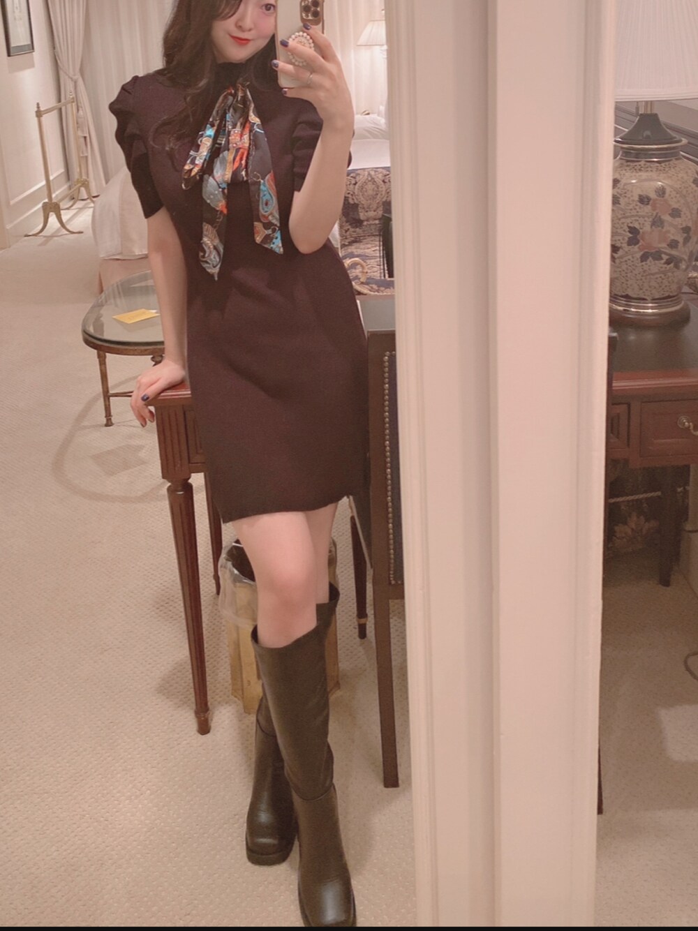 ワンピースをスカーフでアレンジ😌素敵なホテルだった