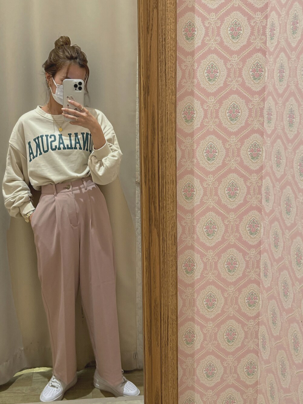 . ベビーピンクかわいい🎀 スウェットと合わせて甘くなりすぎないように♩