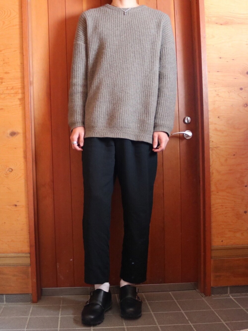 ふじさんのニット/セーター「ヤク畦編みビックニット」を使ったコーディネート