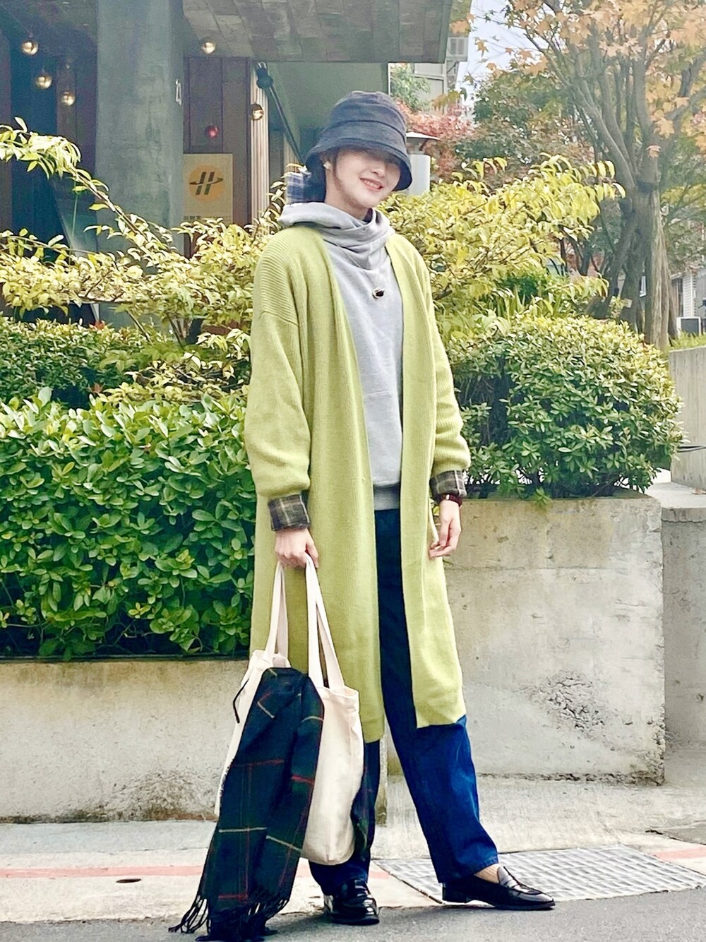 同樣的長版針織衫敞開穿,配帽T和牛仔褲,風格就完全不同了;配牛津鞋會比較正式,Converse 或運動鞋的話會更有休閒感