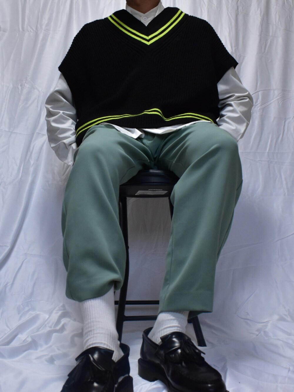 NAOTOのニット/セーター「BIGショートラインベスト(HARE)」を使ったコーディネート