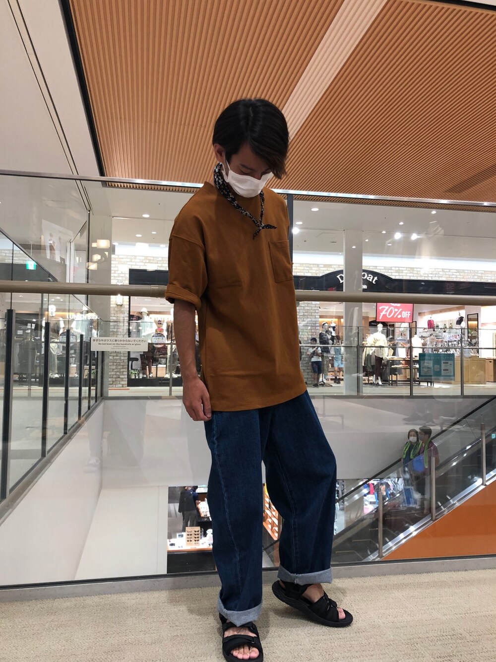 いつも見て頂きありがとうございます😊 デニムパンツにブラウンのTシャツを合わせて見ました! 相性が良いですよね! ゆったりとオーバーサイズで着た方がいいかと思います! またサンダルを履いて夏っぽくしました!