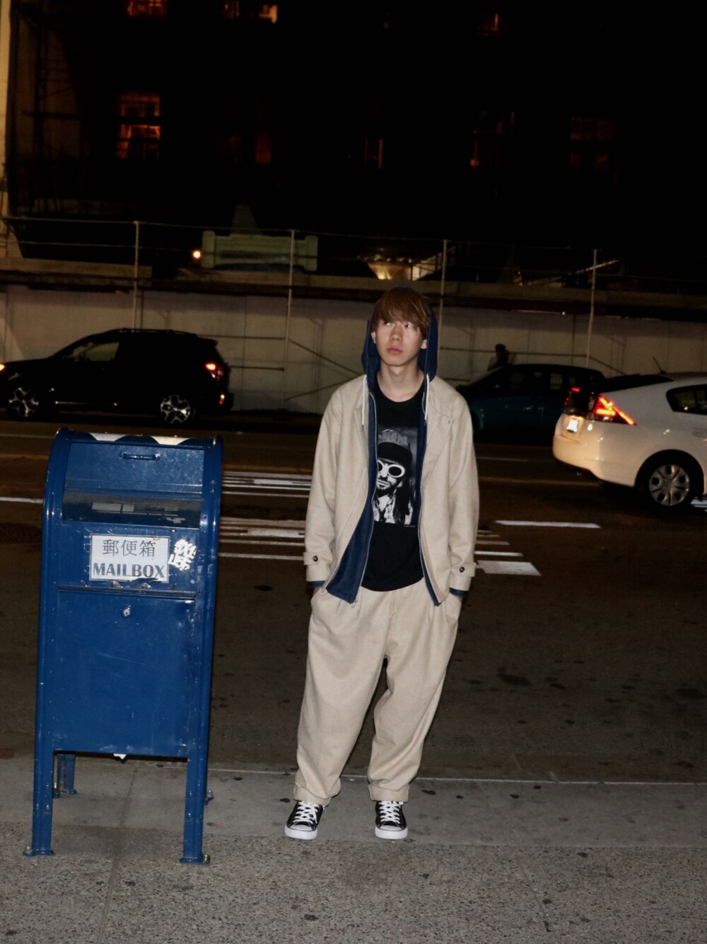 yotsubaのセットアップ STUSSYのデニムパーカー UNIQLOのTシャツ CONVERSEのシューズ
