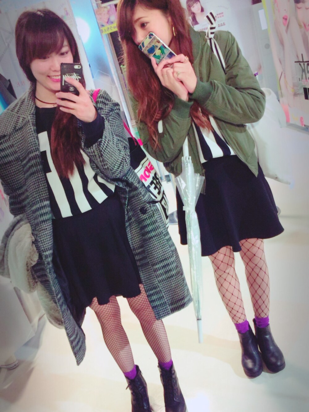 三代目メトロポリスコーデ! 黒のフレアに網タイツ、三代目のライブカラーである紫ソックス💟