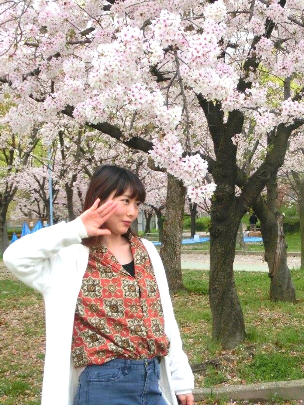 柄shirt🍿🍿 念願のお花見🌸🌸🌸🌸🌸ロングカーディガンにスキニー✌🏻