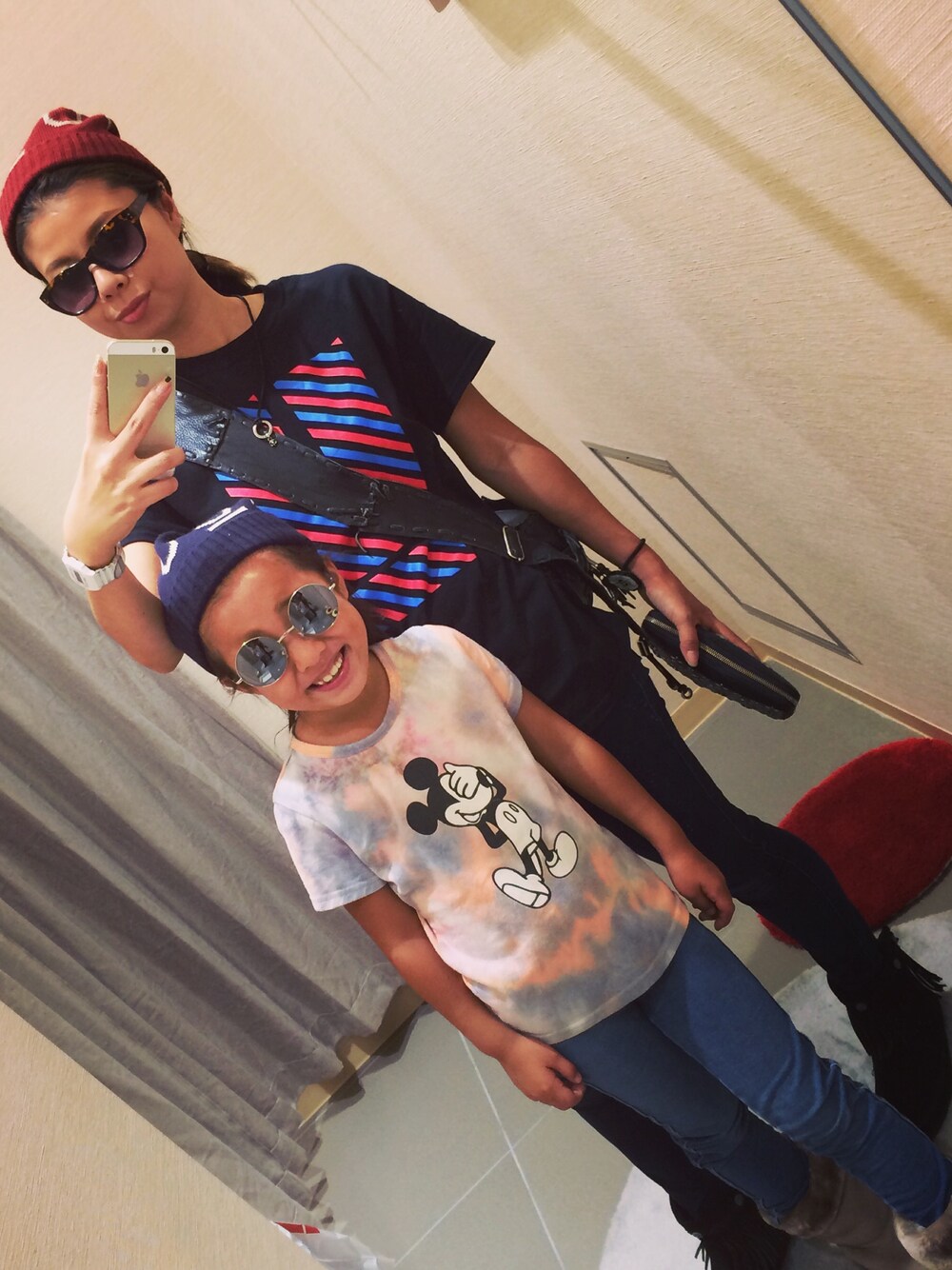 初の親子コーデ!はずかしw uuのニットキャップがポイントです!