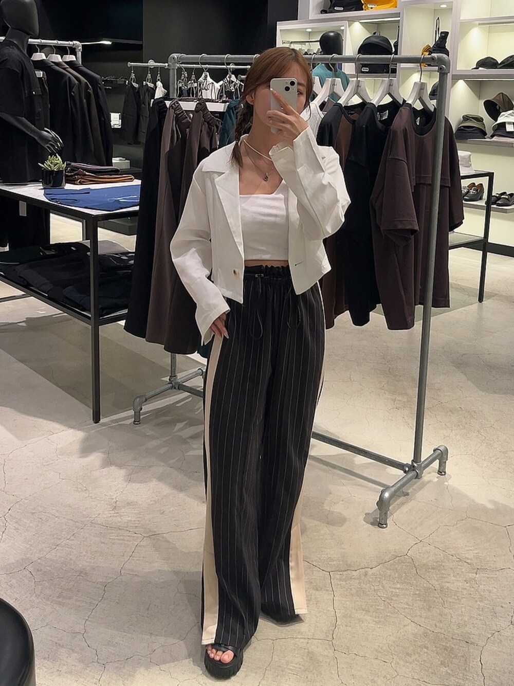 enaのスラックス「ドロストストライプラインパンツ」を使ったコーディネート