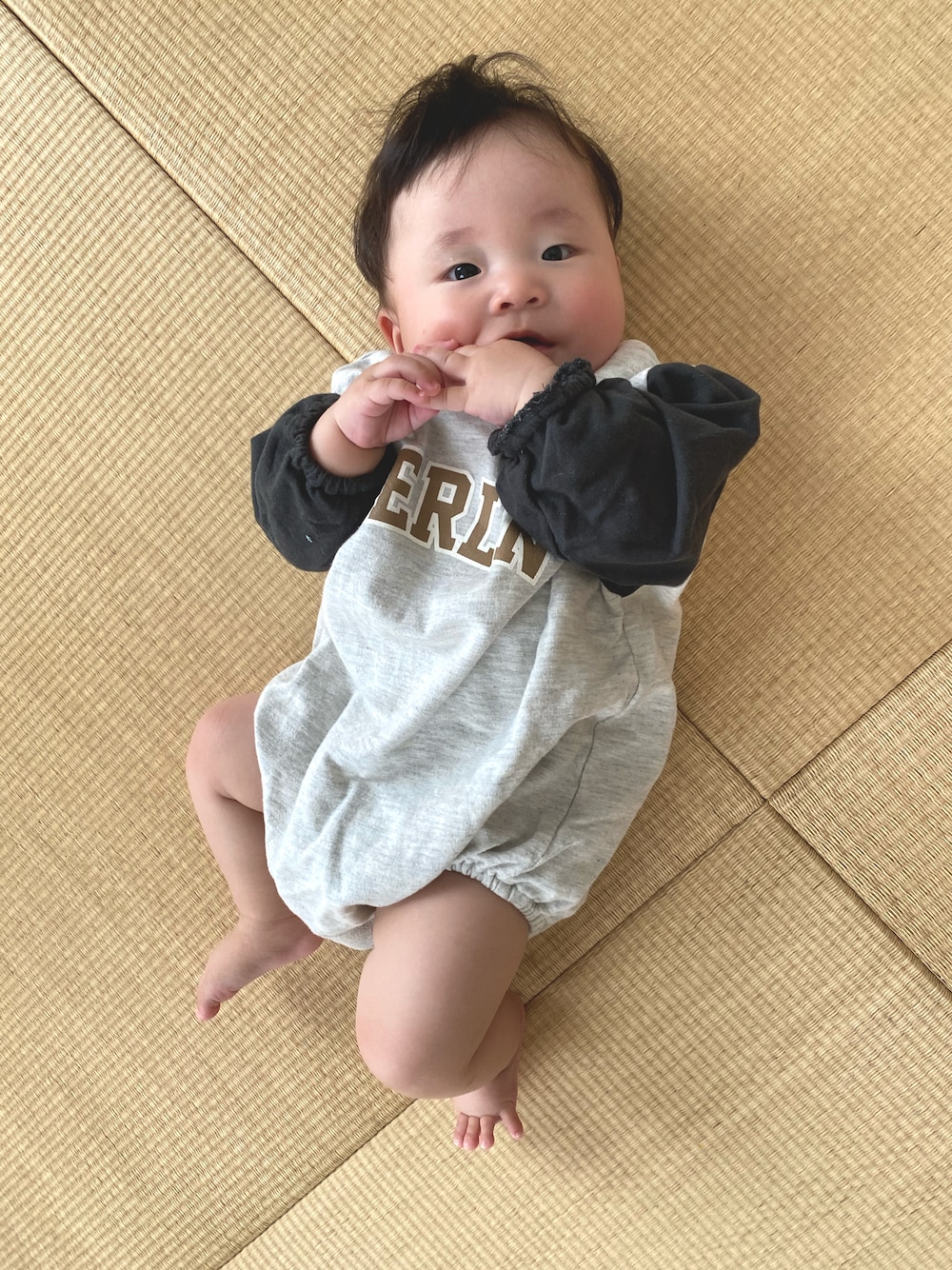 niputotoのロンパース「バイカラー スウェットロンパース」を使ったコーディネート